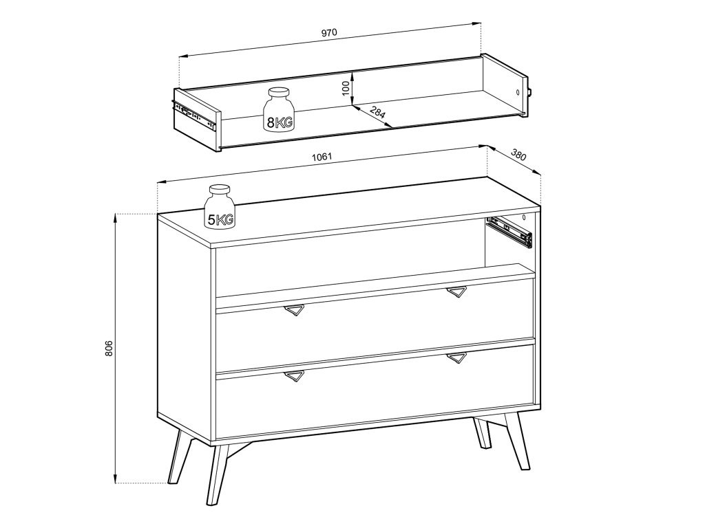 - Anyaga: laminált DTD / bükkfából készül tömör fa lábak / alumínium fogantyúk
