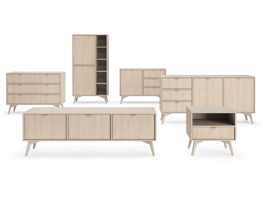 Engedje meg, hogy bemutassuk a FOREST bútor családot, amely skandináv stílust visz majd az otthonába. A kollekció darabjai 16 mm vastag laminált bútorlapból készülnek ABS élzárással. Gyönyörű semleges bézs színben készül, amely így tökéletes választást jelent különböző stílusú belső terekbe. Az egész bútor kollekciót halszálka mintával díszített, amely elegáns és stílusos designt kölcsönöz neki. A bútorok arany színű alumínium fogantyúkkal díszítettek, így igazán luxusos kinézettel rendelkeznek. A bükkfából készült tömör fa lábak pedig biztosítják a stabilitását. A Forest kollekcióba komódok, éjjeliszekrény és tévés szekrény is tartozik. Az összeállításban minden olyan bútor elemet megtalál, amely szükséges lehet a nappali berendezéséhez. Hozzon létre egy modern skandináv sármmal rendelkező otthont a Forest bútor kollekció segítségével.