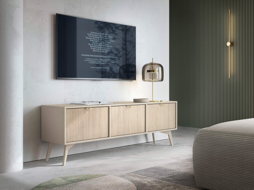 A Forest tévés szekrény tökéletes kiegészítő minden nappaliba. Skandináv stílusban készül bézs színben tömör fa bükkfa lábakkal. 158 centiméteres szélességével még egy nagyobb tévének és a multimédiás berendezéseknek is helyet kínál. Praktikus tároló helyet biztosít a három lenyitható kis szekrénynek köszönhetően. Ez a TV szekrény nem csak praktikus megoldás minden nappaliba, de stílusos kiegészítő is.