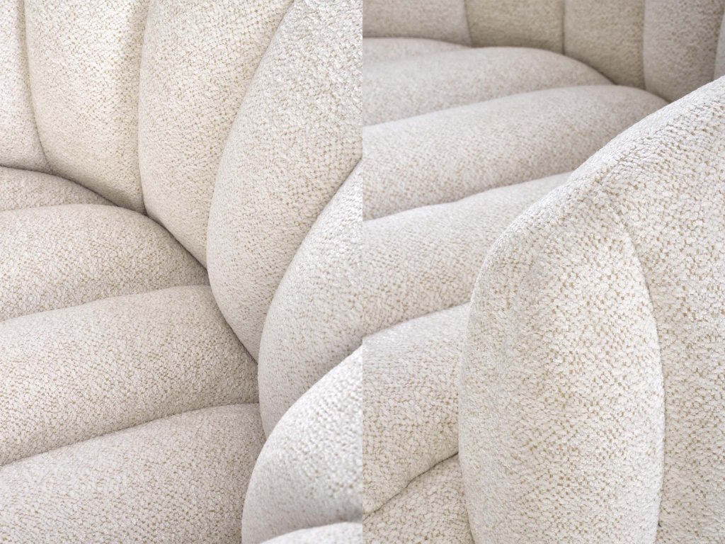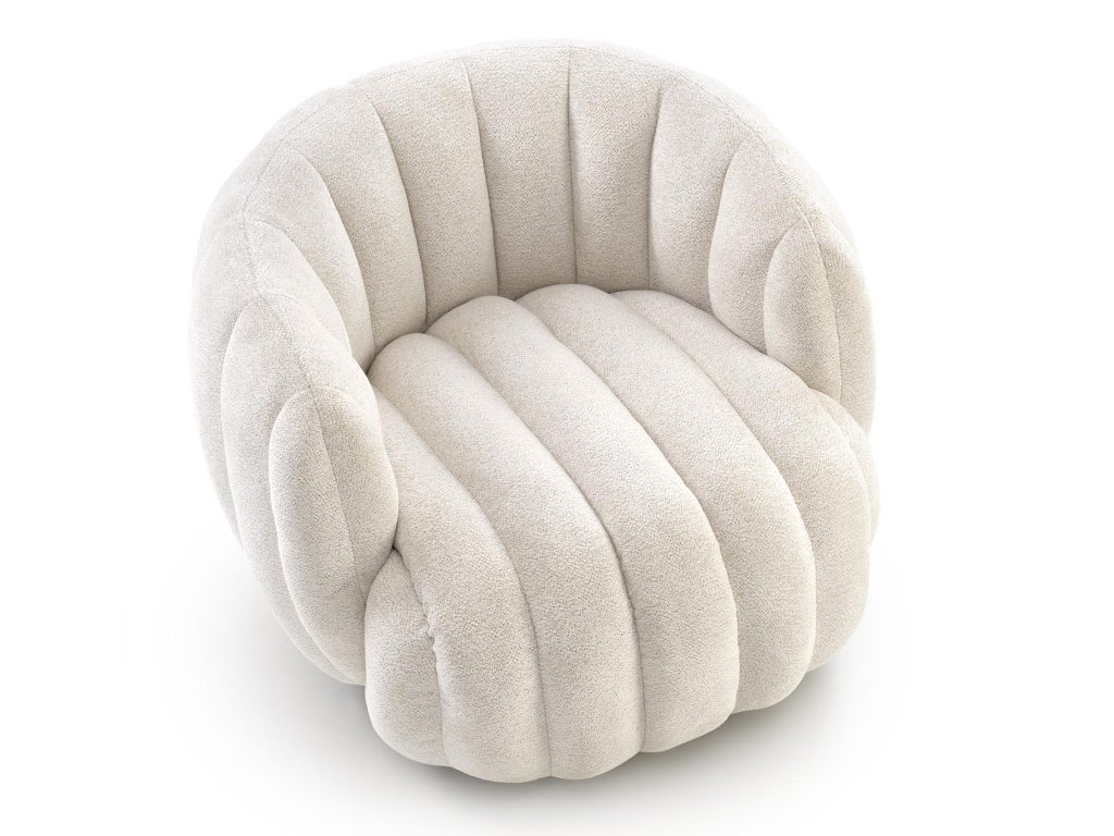 A Fraser kárpitozott fotel modern dizájn és kivételes kényelem kombinációját hozza az enteriőrbe. Forgó talpa dinamikus használatot tesz lehetővé, míg a függőleges tűzés vizuális struktúrát és eleganciát kölcsönöz. A minőségi Raven anyagból készült, krémszínű kárpitozás finom textúrájú, kellemes tapintású, és nagy ellenálló képességgel bír a mindennapi kopással szemben. Lekerekített formáinak és gondosan kidolgozott részleteinek köszönhetően a Fraser fotel nemcsak kényelmes pihenőhely, hanem markáns dizájnelem is, amely jól illik a nappaliba, hálószobába vagy stílusos előszobába.