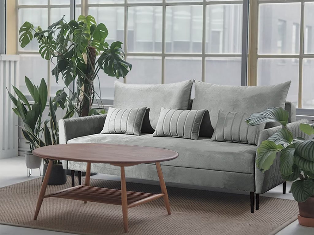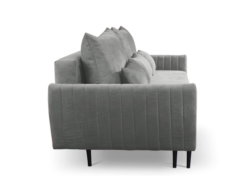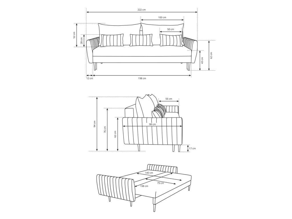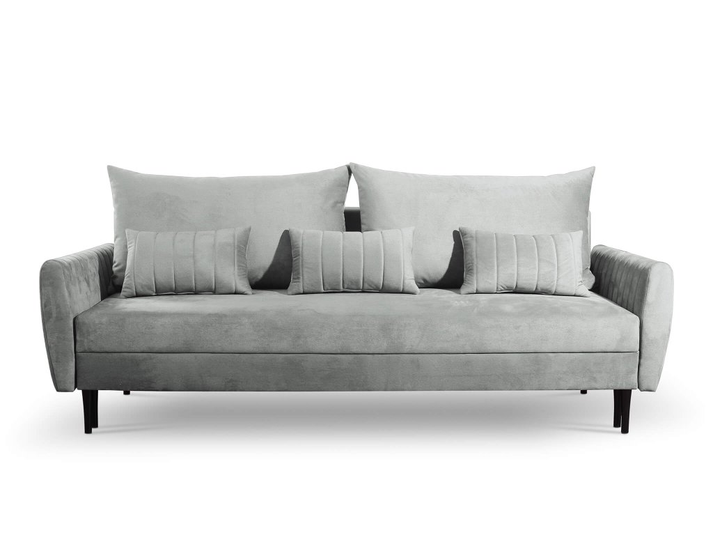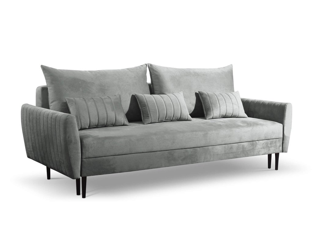 Vigyen egy kis újdonságot a nappalijába a Frezja kihúzható kanapé segítségével. A kanapéágy minőségi és kényelmes helyet biztosít az ülésre vagy az alvásra. Tökéletes választás kisebb szobákba is. Az egyszerű és elegáns kanapét gyorsan egy kényelmes vendégággyá alakíthatja. Ráadásul a kanapéágy egy praktikus tároló hellyel is rendelkezik, ahová elhelyezheti az ágyneműt, plédeket vagy párnákat. A kanapé eleganciáját még jobban növelik a fekete lábak, amelyek tökéletesen illenek a kárpitozással. A lábak tömör fából készülnek fekete színben. A kanapéágy ülőfelülete T30-as PUR habból és hullámrugókból áll, amelyek biztosítják a maximális kényelmét. A szétnyitható kanapé tökéletes választás azoknak, akik egy multifunkciós megoldást keresnek az otthonukba. A kanapé puha párnákkal is rendelkezik, amelyek még inkább növelik a kényelmet. A kartámlák és a kispárnák gyönyörű steppeléssel is rendelkeznek. Az egész kanapéágy és a párnák is minőségi Velluto Grey 16-os szövettel vannak kárpitozva. Ez az anyag a velúr szövetek közé tartozik, amely nagyon puha és kellemes tapintású. Élvezze a kényelmes pihenést a barátokkal és a családdal a Frejza kanapénak köszönhetően.