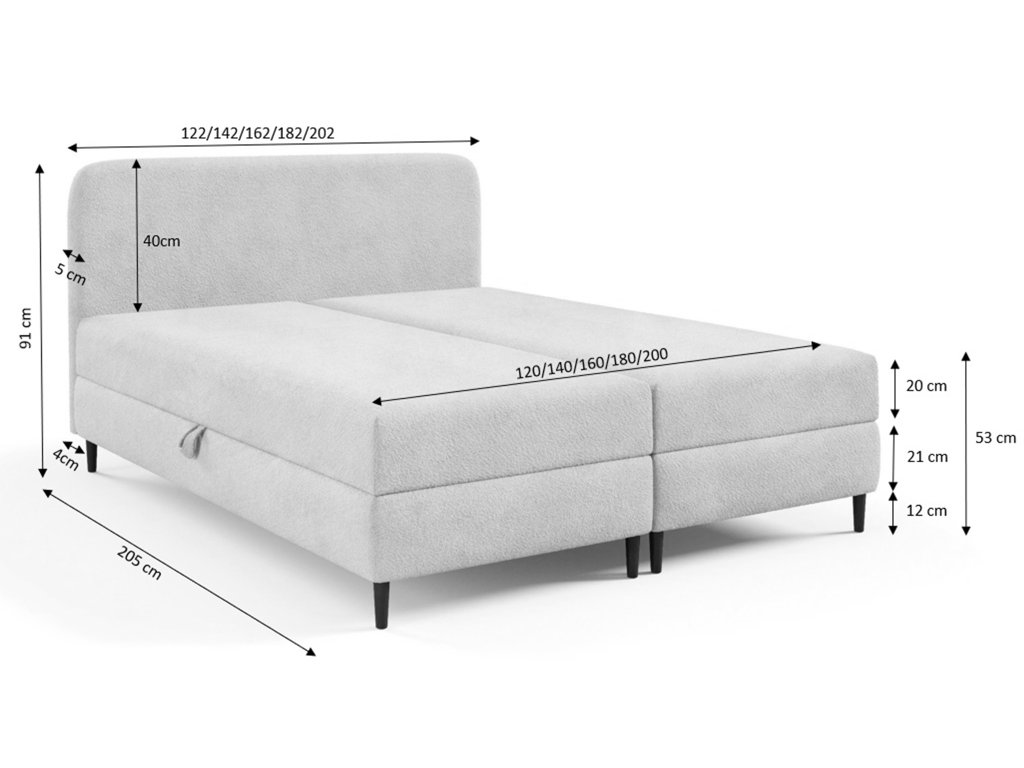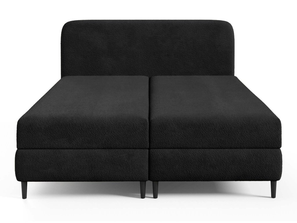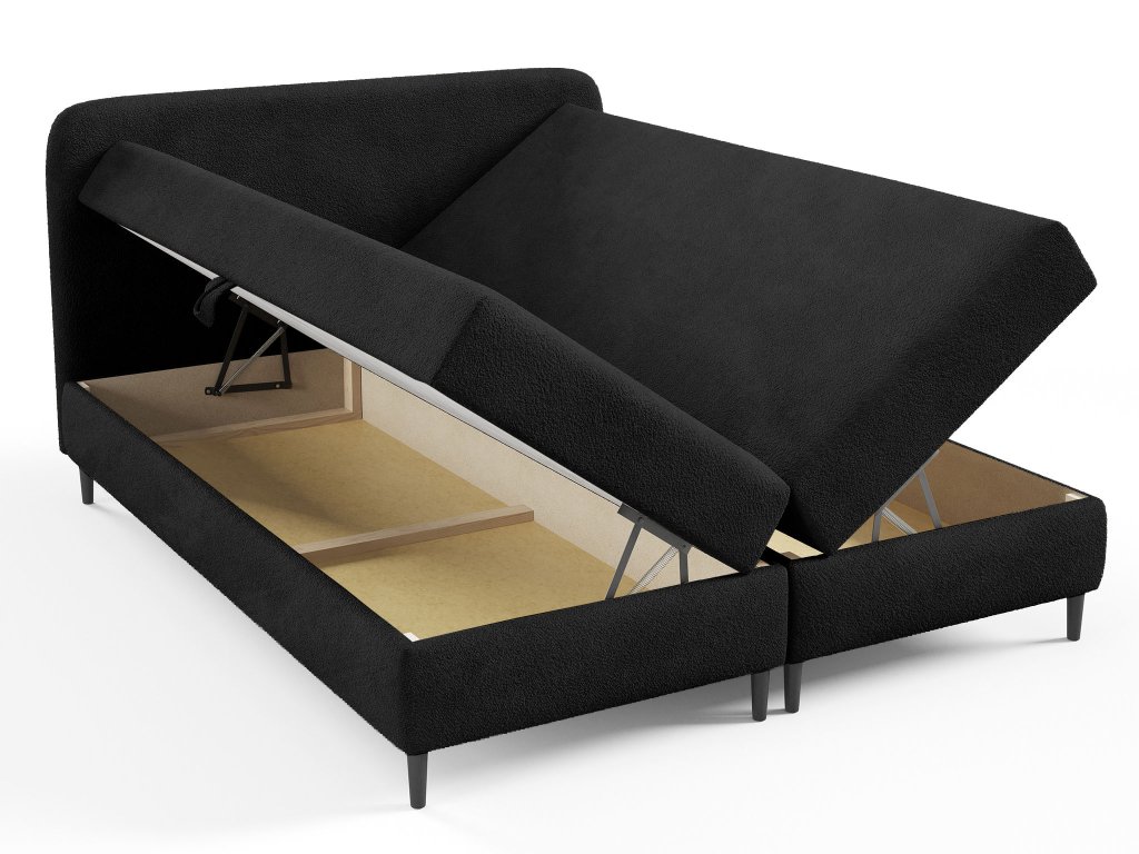 Az ágyat exkluzív fekete Lambi szövet borítja, amely finom, buklé (báránygyapjú hatású) textúrájával azonnal magára vonja a figyelmet. A fekete szín időtlen, könnyen kombinálható más kiegészítőkkel, és elegáns, nyugodt hangulatot teremt a hálószobában. A Lambi anyag tapintása kellemesen puha, megjelenése esztétikus és egyben praktikus is – magas kopásállóságának köszönhetően hosszú éveken át megőrzi hibátlan szépségét.