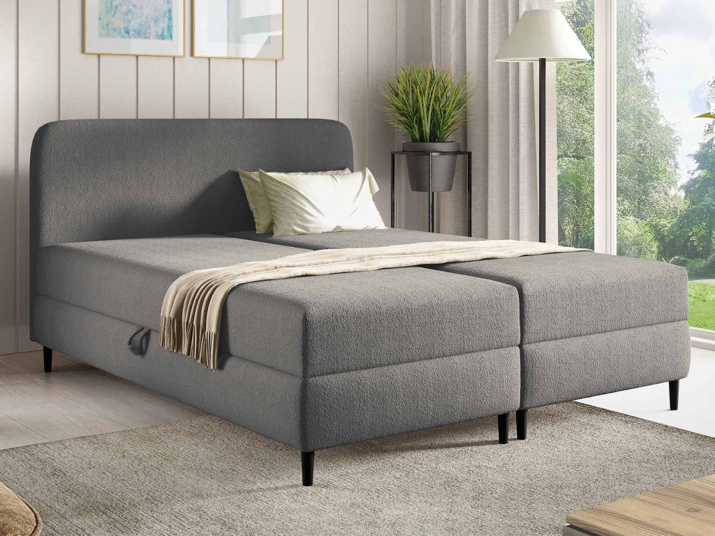 Az ágy sötétszürke Lambi anyagba van öltöztetve. Ez a szín nagyszerű – praktikus, mert nem látszik rajta minden porszem, és egyben nagyon elegáns és megnyugtató. Luxust és modern légkört teremt a hálószobában. A Lambi anyagnak egyedi buklé textúrája van – puha tapintású, és szerkezetének köszönhetően drágábbnak tűnik. Ráadásul a Lambi ismert magas kopásállóságáról, így a Fubu ágyba való befektetés hosszú évekre szól. Ez a szépség, a praktikusság és a tartósság kombinációja.