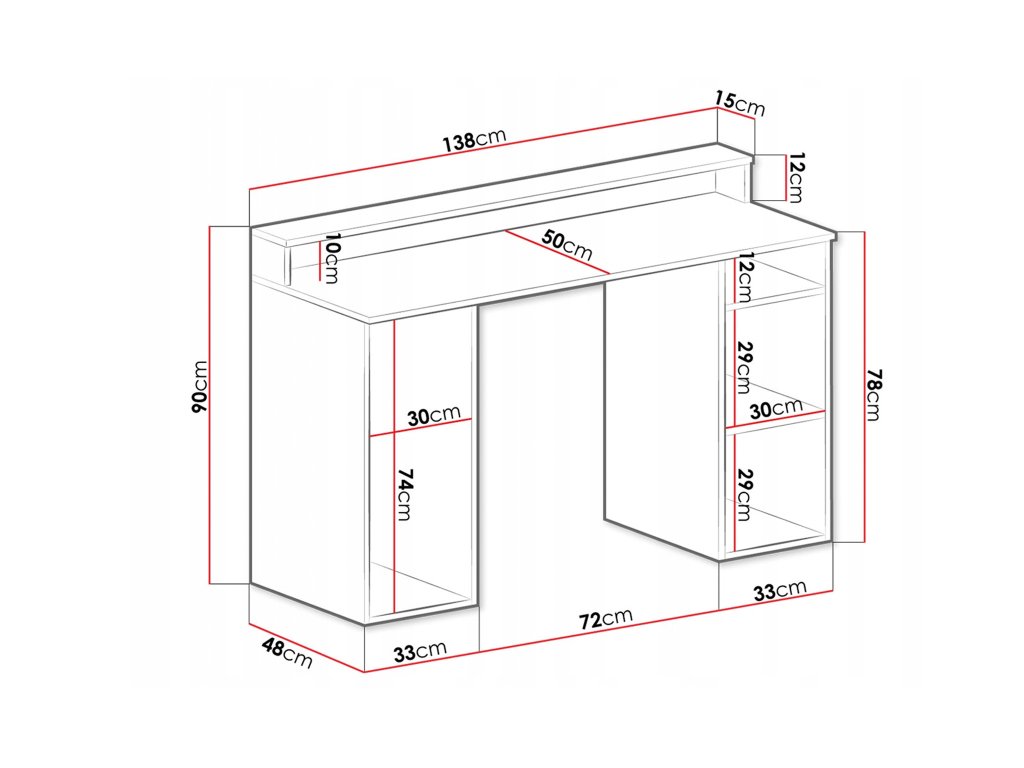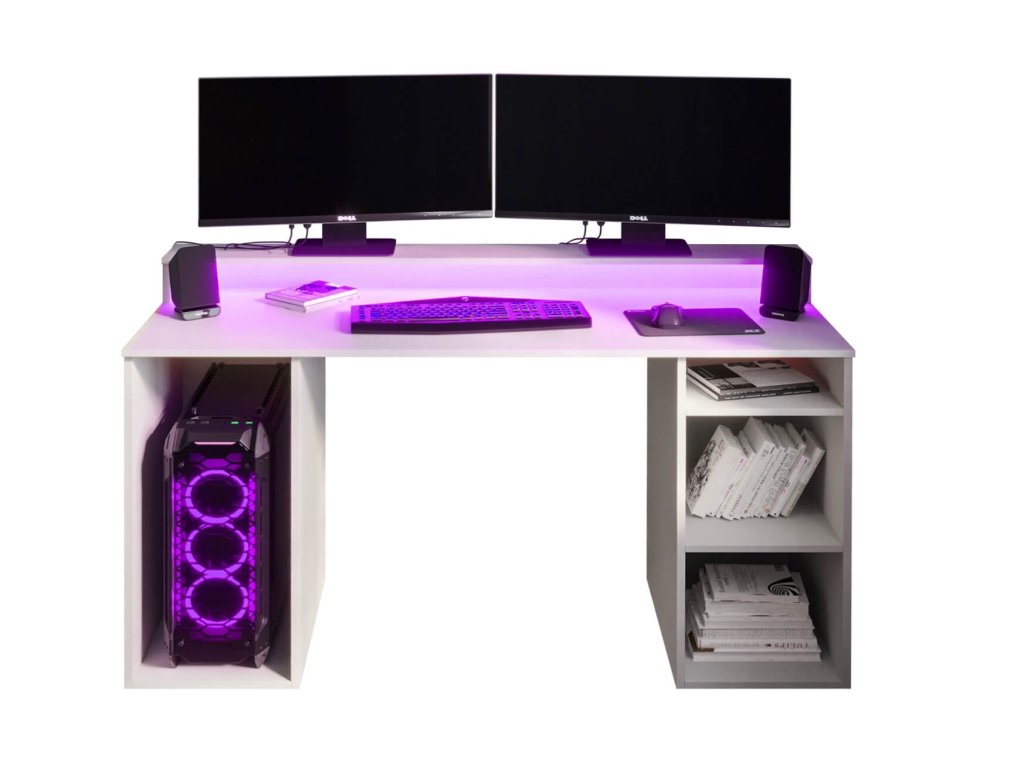 Fehér színű praktikus GAMER 1 asztal, amelynek része egy polc is, amelyen kényelmesen elfér egy vagy akár két monitor is. Tökéletes választást jelent minden gyerekszobába, ifjúsági szobába, esetleg dolgozószobába vagy irodába. Jó választás gyerekeknek, akik szeretnek számítógépes játékokat játszani, vagy olyan dolgozóknak, akik otthonról dolgoznak. A számítógépes íróasztal minőségi 16 mm vastag laminált bútorlapból készült, a szélei pedig felületkezelésen mentek át. Ellenállóak a sérülésekkel szemben a 0,5 mm PVC élzárásnak köszönhetően. Az íróasztal része egy nyitott szekrény a számítógépháznak, a másik oldalon pedig három nyitott polc található az iratoknak, könyveknek.