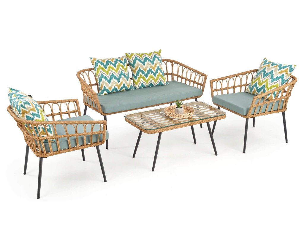 A kerti kanapéhoz tartozik egy nagy puha ülőpárna is és két aranyos színes mintás párna is, amelyek színt visznek a teraszra. Amennyiben Ön egy olyan kávézó, étterem vagy cukrászda tulajdonosa, amely kültéri terasszal is rendelkezik, mindenképp szeretnénk figyelembe ajánlani a kerti bútor kínálatunkat.