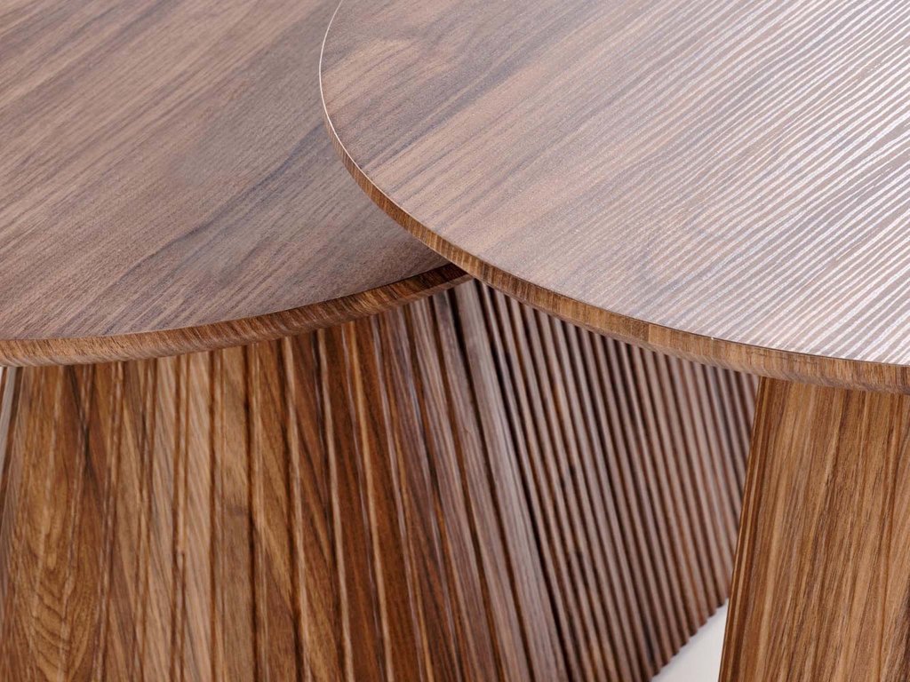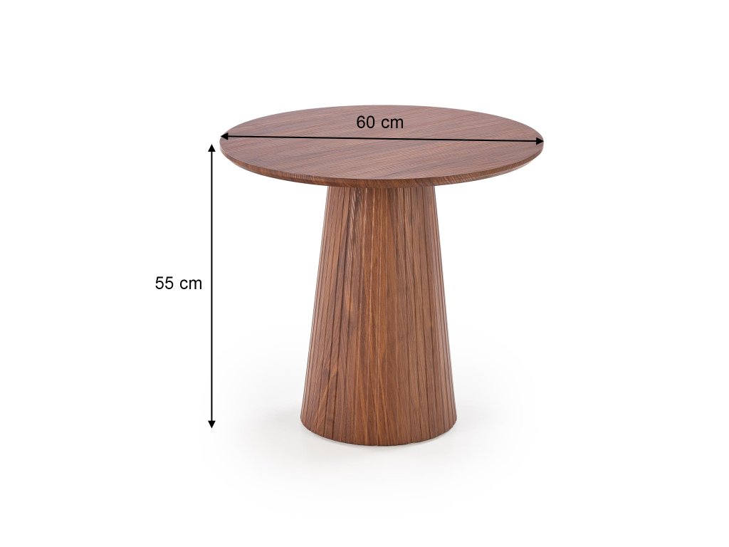 A GISELLA S dohányzóasztal dió színben a klasszikus és modern stílus harmonikus ötvözetét viszi el otthonába. Kerek asztallapja könnyed, légies hatást kelt, míg a bordázott talapzat elegáns, kiegyensúlyozott megjelenést biztosít. Tökéletes választás a nappaliba mint dekoratív kiegészítő, de praktikus kisasztalként is szolgálhat könyveknek, kávénak vagy kedvenc dísztárgyaknak. A dió szín időtlen árnyalata jól illik a fa, fehér vagy szürke tónusokhoz, így a Gisela S asztal modern és hagyományos otthonokba egyaránt könnyedén beilleszthető.