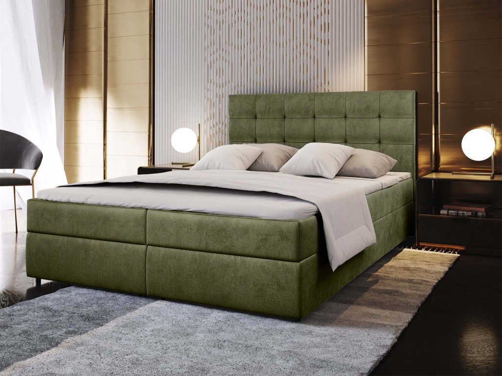 GLOS M ágyneműtartós boxspring ágy 180x200 - olivazöld