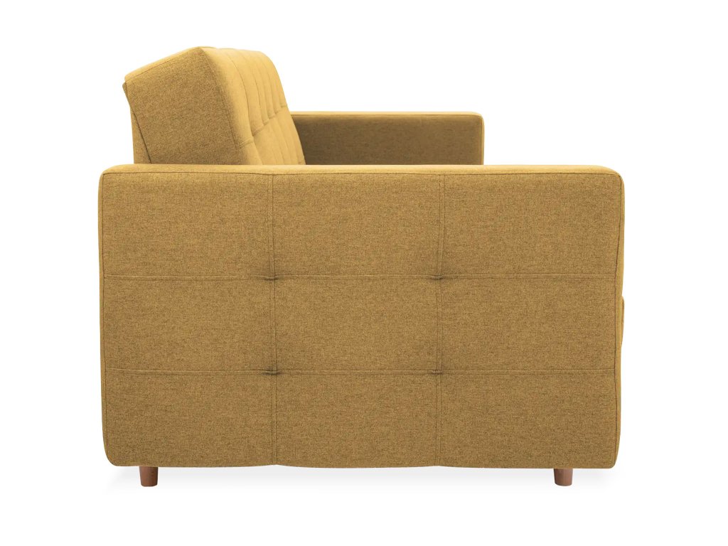 A nem mindennapi sárga színben készült GODIVO ágyazható kanapé felragyogtat minden szobát. Tökéletes választást jelent a nappaliba vagy akár a dolgozószobába is. Ez a kanapé tökéletes kombinációját nyújtja a kényelemnek, a stílusnak és a praktikumnak. A szétnyitható funkciójának köszönhetően egy kényelmes fekhelyet hozhat létre a vendégeinek. Méreteinek hála kisebb szobákba is választható. Tömör fából és minőségi bútorlapból készült váza hosszú élettartamot garantál még mindennapos használat mellett is. A maximális kényelemről a 2,4 mm vastag Bonell rugókból álló rendszer és a 3 cm vastag, nagy rugalmasságú T30-as hab gondoskodik, amelyek egyszerre biztosítanak megfelelő alátámasztást és puhaságot. A KLIK-KLAK mechanizmus biztosítja a kényelmes és egyszerű szétnyitását. Ez a gyönyörű és stílusos steppelt kanapé mindenkit levesz majd a lábáról.