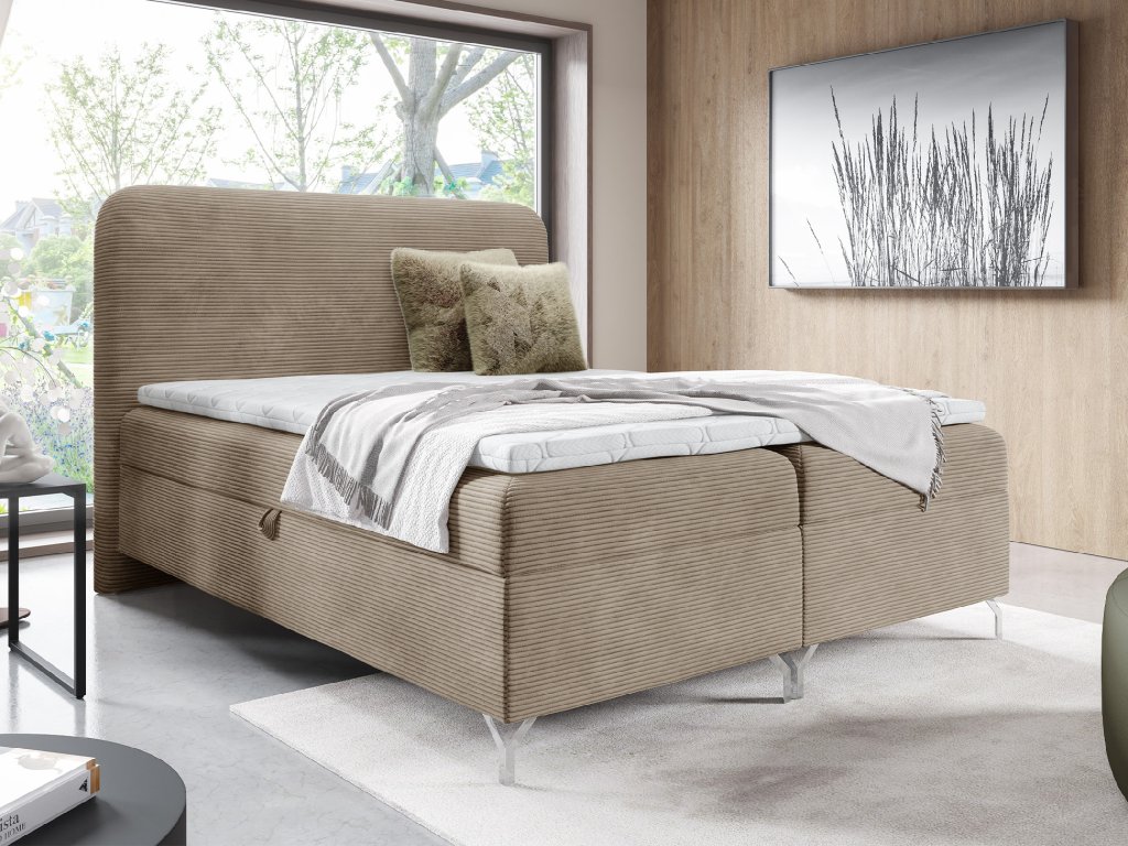 A bézs kordbársony szövettel kárpitozott GOMEZ boxspring franciaágy 140x200 cm tartalmaz mindent, amire csak szüksége lehet: matracot, tágas ágyneműtartót, magas háttámlát és kényelmes fedőmatracot is. A magas puha háttámla jó szolgálatot tesz az esti olvasás vagy tévénézés közben. Az egész ágy igazi luxust és kényelmet kínál. A boxspring ágy tökéletes választás nem csak a kisebb hálószobákba, de a vendégszobába vagy a kamaszok ifjúsági szobájába is. Az ágy elegáns Poso szövettel kárpitozott, amely a manchester szövetek közé tartozik, nagyon kellemes tapintású és puha.