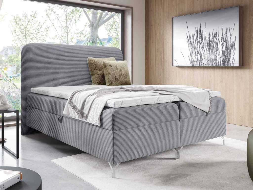Amennyiben egy olyan ágyat keres, amely már tartalmaz minden szükségest, válassza a szürke kordbársony szövettel kárpitozott GOMEZ franciaágy 140x200 cm tartalmaz mindent, amire csak szüksége lehet: matracot, tágas ágyneműtartót, magas háttámlát és kényelmes fedőmatracot is. A magas puha háttámla jó szolgálatot tesz az esti olvasás vagy tévénézés közben. Az egész ágy igazi luxust és kényelmet kínál. A boxspring ágy tökéletes választás nem csak a kisebb hálószobákba, de a vendégszobába vagy a kamaszok ifjúsági szobájába is. Az ágy elegáns Poso szövettel kárpitozott, amely a manchester szövetek közé tartozik, nagyon kellemes tapintású és puha.