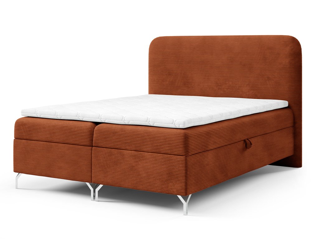 Amennyiben egy stílusos ágyat keres, amely domináns eleme lesz a hálószobájának a téglavörös kordbársony szövettel kárpitozott GOMEZ boxspring ágy 180x200 cm nagyon jó választás lehet. Az amerikai stílusú ágy POSO kárpitszövettel kárpitozott, amely egy modern velúr kordbársony szövet lágy manchesteres textúrával, amely nagyon elegáns és meleg hatást kelt. 100 % poliészterből készült, melynek köszönhetően nagyon ellenálló, mégis puha és kellemes tapintású. A 380 g/m² grammsúlyának és a 35 000 ciklusos (a Martindale teszt szerint) kikopásállóságának köszönhetően tökéletes bútorszövet a székek, fotelek és ágyak kárpitozásához. A szövet ráadásul még állatbarát (pet friendly) is, ugyanis ellenálló a szakadásoknak és intenzív használat mellett is megőrzi a kinézetét.