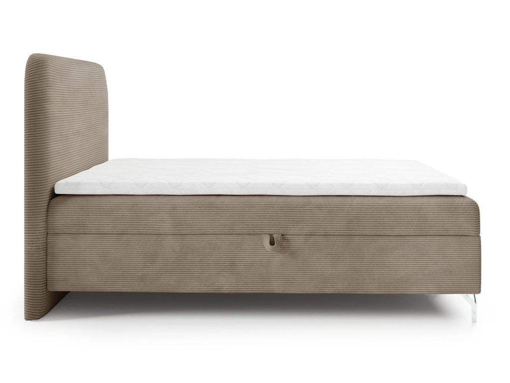 Amennyiben egy igazán nagy franciaágyat keres az otthonába, jó helyen jár! A 200x200 cm méretben készült bézs kordbársony szövettel kárpitozott GOMEZ boxspring ágy tökéletes választás lehet. Ez az ágy mindennel rendelkezik, amire csak szüksége lehet. Tartalmaz matracokat, ágyneműtartót, fedőmatracot, ágytámlát és még lábakat is. Nem csoda hát, ha egyszerűen mindenkit levesz a lábáról. A magas puha háttámla jó szolgálatot tesz az esti olvasás vagy tévénézés közben. Az egész ágy igazi luxust és kényelmet kínál. A boxspring ágy tökéletes választás nem csak a hálószobákba, de a vendégszobába vagy szállodai szobákba is. A kontinentális ágy két tágas ágyneműtartóval is rendelkezik, amelyek a rugós mechanizmusnak köszönhetően könnyedén és erőfeszítés nélkül nyithatók. A kényelmes alvásról bonell rugókból és T30-as habból álló matrac gondoskodik, amelyhez társul még egy 4 cm vastag T-25 habból készült fedőmatrac (topper) is. A stabil szerkezetet ezüst színű fém lábak teszik teljessé, amelyek modern megjelenést kölcsönöznek az ágynak.