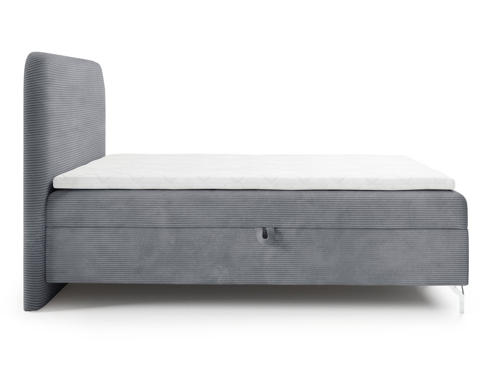 Amennyiben egy igazán nagy franciaágyat keres az otthonába, jó helyen jár! A 200x200 cm méretben készült szürke kordbársony szövettel kárpitozott GOMEZ boxspring ágy tökéletes választás lehet. Ez az ágy mindennel rendelkezik, amire csak szüksége lehet. Tartalmaz matracokat, ágyneműtartót, fedőmatracot, ágytámlát és még lábakat is. Nem csoda hát, ha egyszerűen mindenkit levesz a lábáról. A magas puha háttámla jó szolgálatot tesz az esti olvasás vagy tévénézés közben. Az egész ágy igazi luxust és kényelmet kínál. A boxspring ágy tökéletes választás nem csak a hálószobákba, de a vendégszobába vagy szállodai szobákba is. A kontinentális ágy két tágas ágyneműtartóval is rendelkezik, amelyek a rugós mechanizmusnak köszönhetően könnyedén és erőfeszítés nélkül nyithatók. A kényelmes alvásról bonell rugókból és T30-as habból álló matrac gondoskodik, amelyhez társul még egy 4 cm vastag T-25 habból készült fedőmatrac (topper) is. A stabil szerkezetet ezüst színű fém lábak teszik teljessé, amelyek modern megjelenést kölcsönöznek az ágynak.
