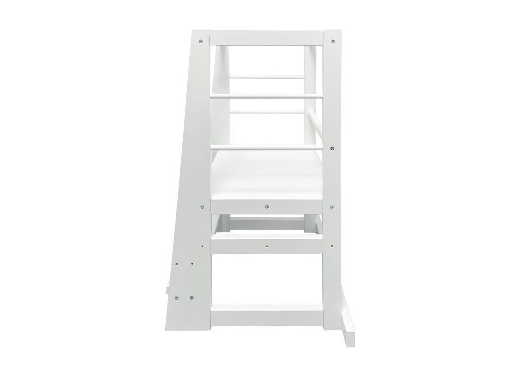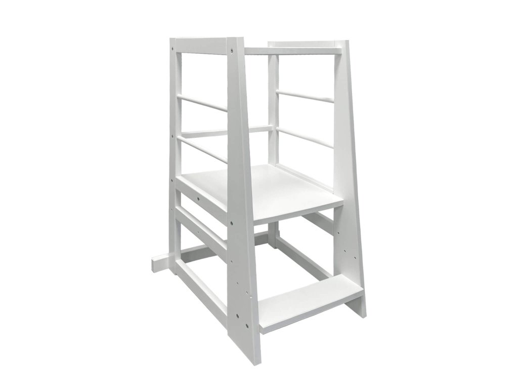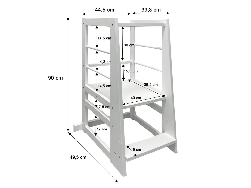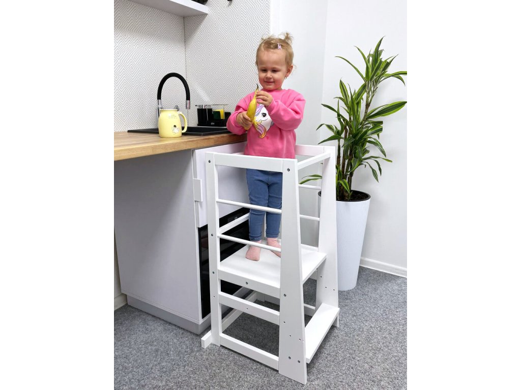 Kis gyermekei vannak, akik gyakran kíváncsiak, hogy mi is folyik fent a konyhapulton? Akkor az Ön konyhájából sem hiányozhat a borovi fenyőből készült Groot tanulótorony. A fehér színű konyhai fellépő nagyon praktikus, ugyanis a segítségével a gyerekeket is bevonhatja az egyszerűbb konyhai feladatokba. A Montessori konyhai kisegítő nem csak fejleszti a kreativitást, a motoros készségeket, de pozitív hatással van a gyermek általános fejlődésére is. A gyerek tanulótorony tehát nélkülözhetetlen eleme minden konyhának. A tanulótornyot 3 éves korig ajánljuk használni.