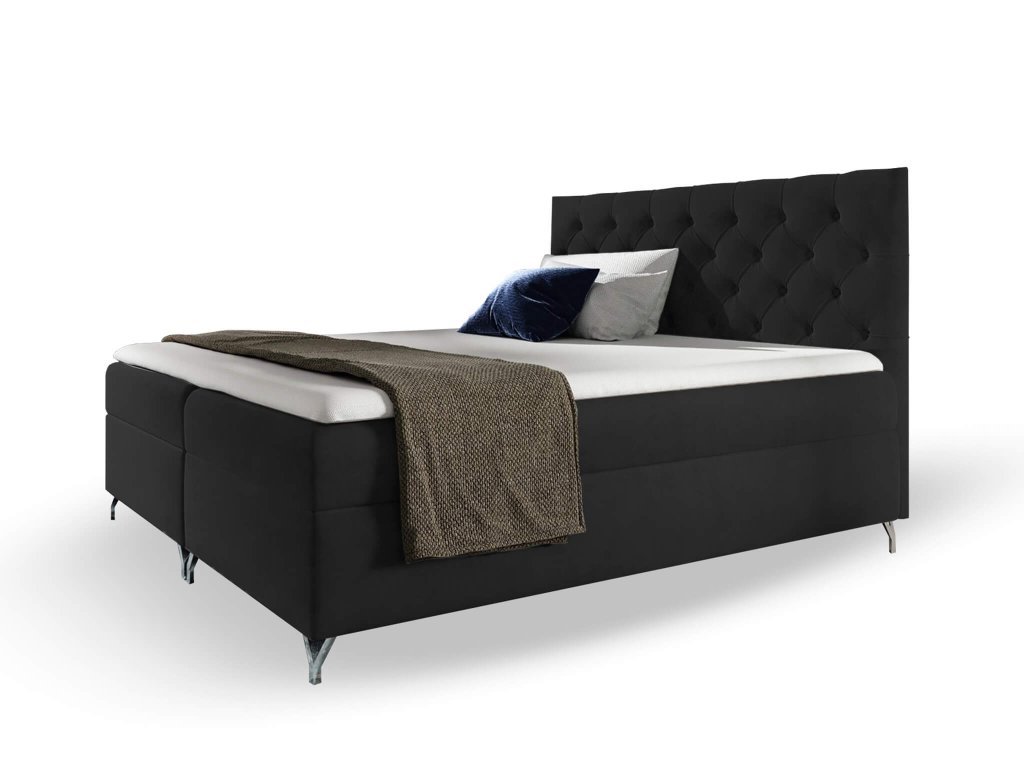 GULIETTE ágyneműtartós kárpitozott boxspring ágy matracokkal 140x200 - fekete