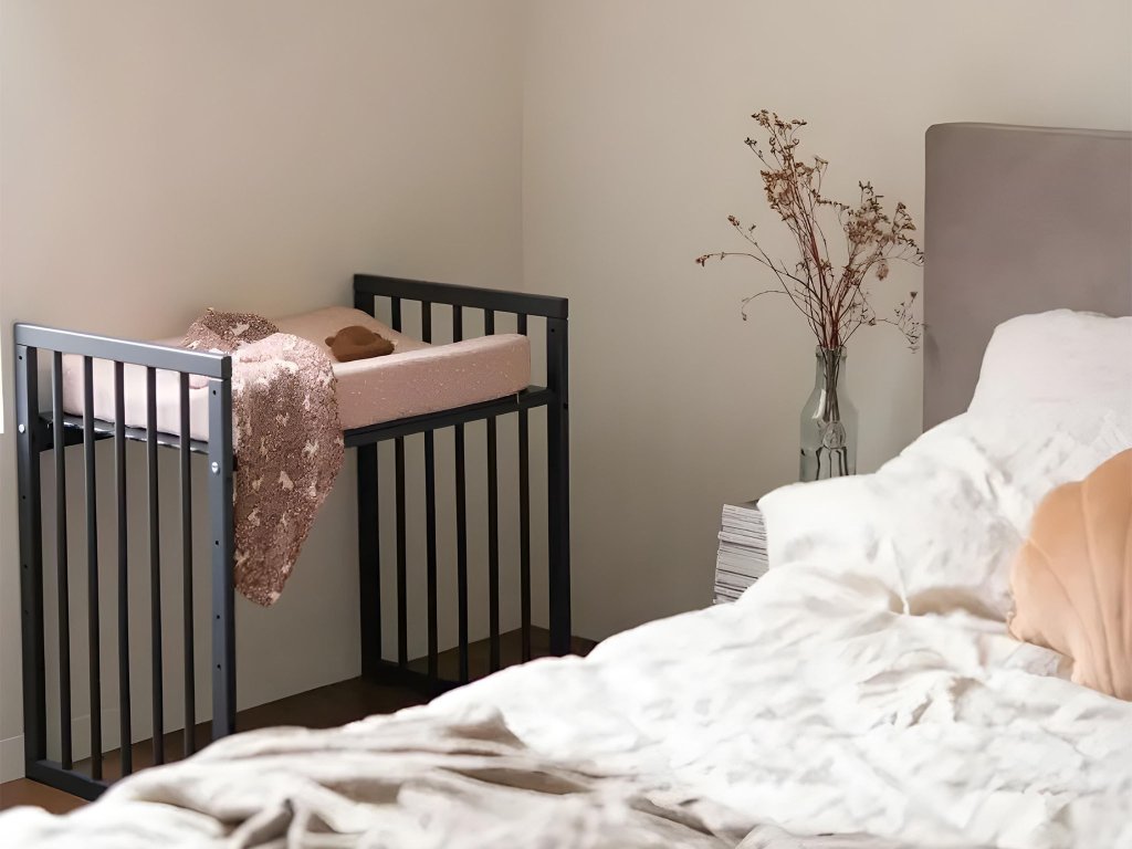 - Szülői ágyhoz rögzíthető kiságy (SzéxMaxMé): kb. 38 x 75 x 77,5 cm
