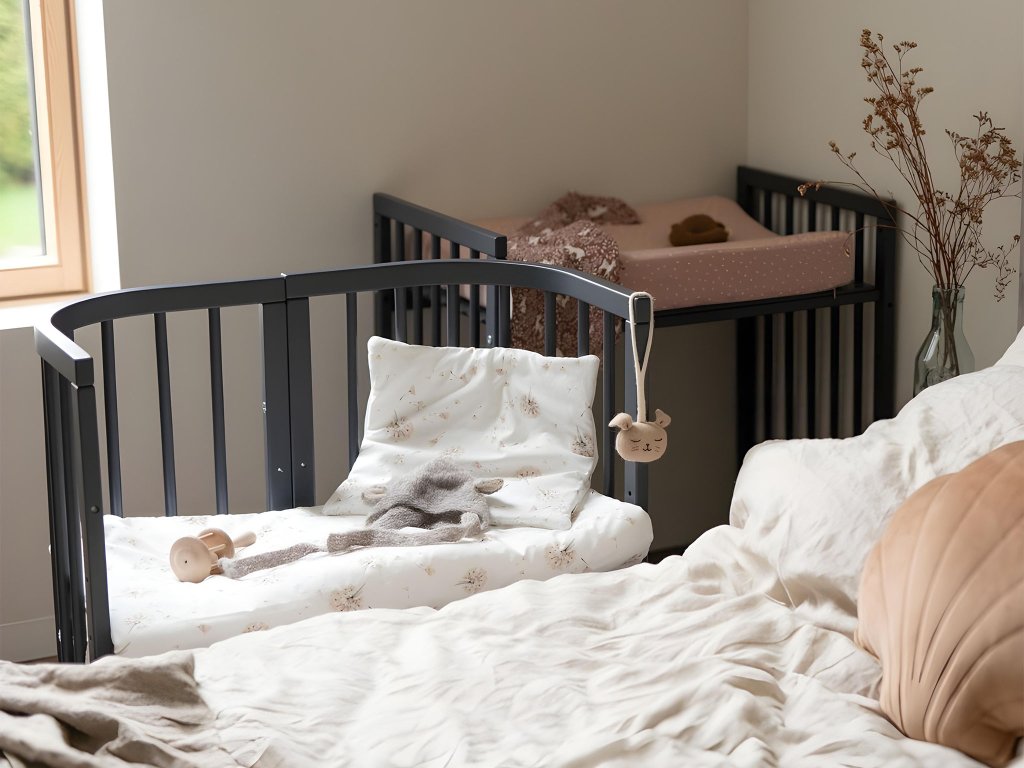 Designos növekvő kiságy 7 az 1-ben, amely többféle módon is összeszerelhető és így gyermekével együtt nől majd. Kisbabája első pár hónapjában a kiságyat a szülői ágyhoz erősítheti egy speciális biztonsági övvel, hogy el ne mozduljon. Az ágyhoz egy háromrészes matrac is tartozik. Ezen kívül rendelkezésére áll majd egy kiságy és egy pelenkázó pult is egy polccal, amelyre elhelyezhet minden szükséges dolgot, ami a pelenkázáshoz kellhet. A kis babaágy nagy előnye a praktikus kerék, amelyek segítségével a kiságy könnyen áthelyezhető.