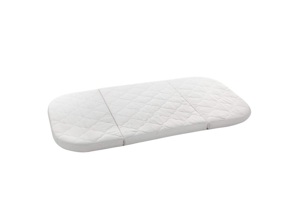 A csomagolás tartalmazza a háromrészes matracot, a gumi kerekeket biztonsági fékkel, a babaágy szülői ágyhoz erősítéséhez szükséges biztonsági övet és a szerelőkészletet.