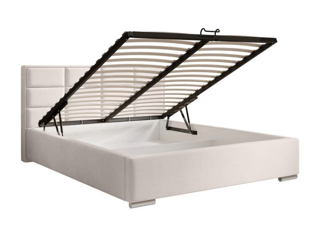 HARMUNE kárpitozott ágyneműtartós franciaágy 140x200 - krémszínű