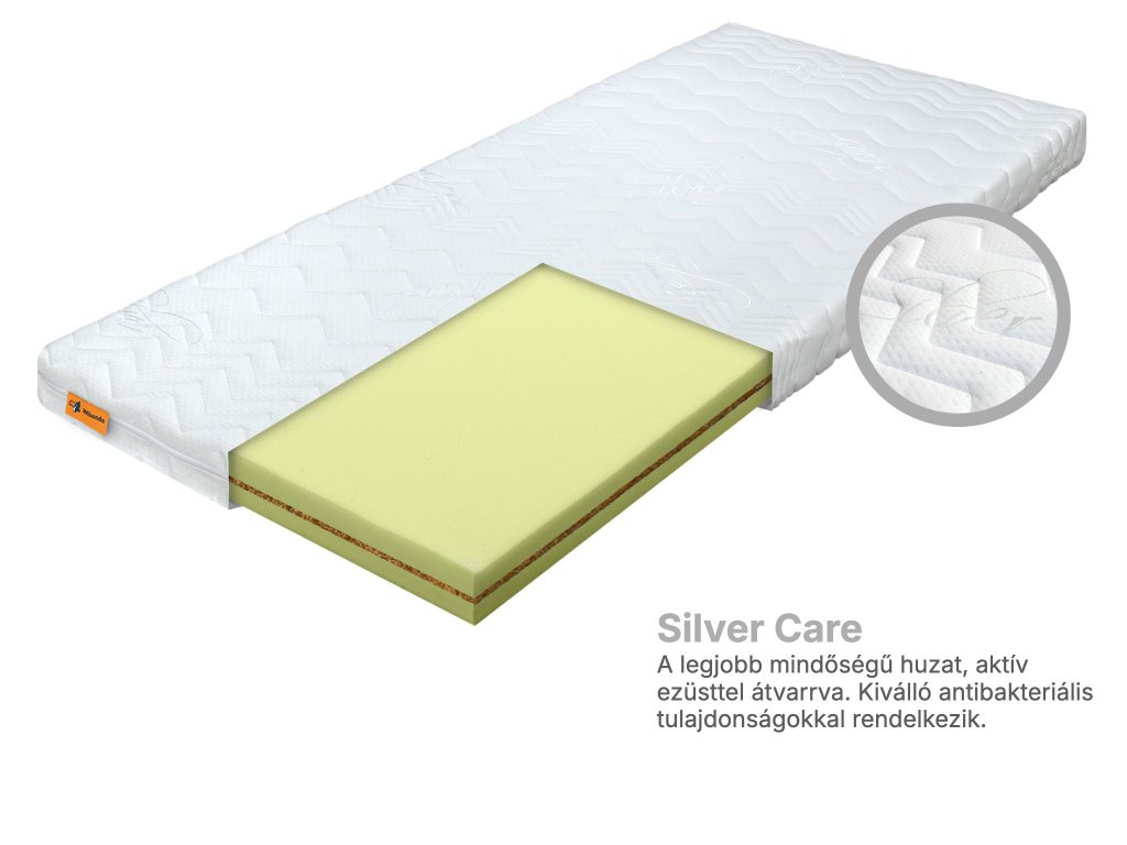 A kókuszszálas gyermek matrac minőségi Silver huzattal van felszerelve, amely ezüst szállal van átszőve. Az ezüst ismert természetes antibakteriális tulajdonságairól, így segít korlátozni a baktériumok és atka kialakulását. A huzat levehető, gépben mosható, ami minden szülő számára ideális a mindennapos karbantartásban. A matrac alkalmas érzékeny bőrű vagy allergiára hajlamos gyermekek számára is. A matrac huzata kellemes anyagból készült, miközben a varrás típusa az aktuális elérhetőségtől függően változhat.