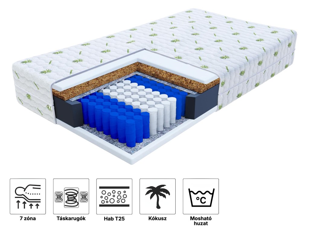 | Matrac anyaga: | Hab, Kókusz, Táskarugós |