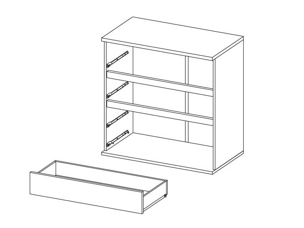 Az Idea 4S komód négy praktikus fiókkal rendelkezik, a komód felső deszkája rakodó felületként apróságokra, mint fényképek, virágok, szuvenírek, stb. is felhasználható.