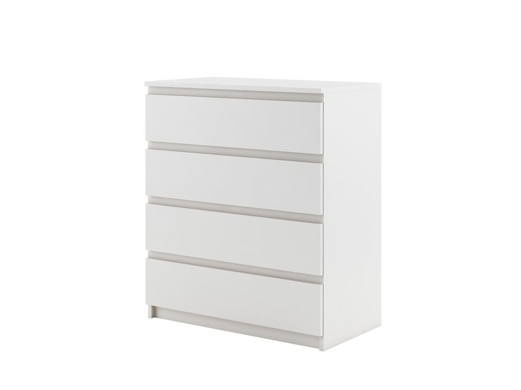 A fehér IDEA komód négy tágas fiókkal rendelkezik, amelyekbe kényelmesen elférnek a zoknik, pólók vagy más ruhanemű. A fiókokon kívül a komód tetejére is elhelyezheti a dísztárgyait, növényeit vagy a családi képeket. A fehér komód minőségi laminált bútorlapból készül. Az élei pedig ABS furnérral biztosítottak. A komód tetejére is elhelyezhet dísztárgyakat vagy képeket. Ennek teherbírása maximum 20 kg.