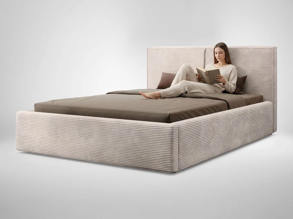 Az Inez ágy egyik nagy előnye a beépített ágyneműtartó, amely az ágyrács alatt található. A felnyitható mechanizmusnak köszönhetően könnyen hozzáférhető, és ideális az ágynemű, a szezonális ruhák vagy egyéb kiegészítők tárolására. Az INES franciaágy luxusos, minőségi Poso velúr kordbársony szövettel van kárpitozva, amely jellegzetes bordázott textúrájával és rendkívüli puhaságával tűnik ki. A Poso manchester szövet légáteresztő, ellenáll a kifakulásnak és a kikopásnak, melynek köszönhetően ideális választás olyan helyiségekbe, ahol a kanapét intenzíven használják. 100 % poliészterből készült, melynek köszönhetően ellenálló, mégis puha és kellemes tapintású. A 380 g/m² grammsúlyának és a 35 000 ciklusos (a Martindale teszt szerint) kopásállóságának köszönhetően tökéletes bútorszövet a székek, fotelek, kanapék és ágyak kárpitozásához. A szövet ráadásul még állatbarát (pet friendly) is, ugyanis ellenálló a szakadásoknak és intenzív használat mellett is megőrzi a kinézetét.