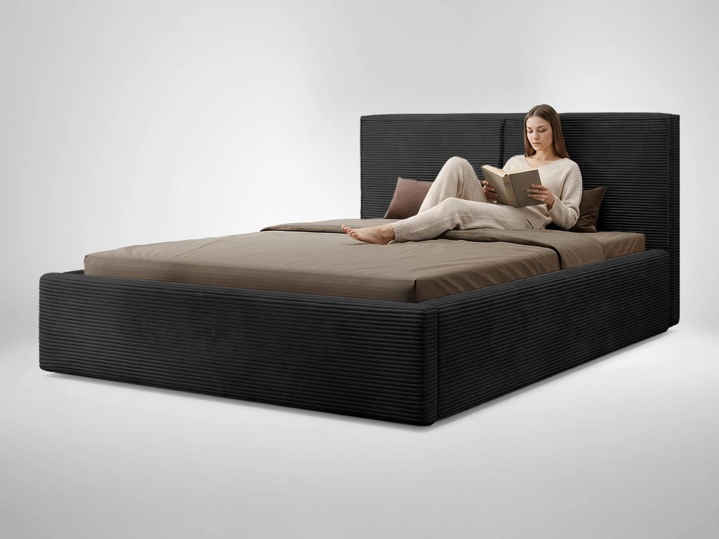 Az Inez ágy egyik nagy előnye a beépített ágyneműtartó, amely az ágyrács alatt található. A felnyitható mechanizmusnak köszönhetően könnyen hozzáférhető, és ideális az ágynemű, a szezonális ruhák vagy egyéb kiegészítők tárolására. Az INES franciaágy luxusos, minőségi Poso velúr kordbársony szövettel van kárpitozva, amely jellegzetes bordázott textúrájával és rendkívüli puhaságával tűnik ki. A Poso manchester szövet légáteresztő, ellenáll a kifakulásnak és a kikopásnak, melynek köszönhetően ideális választás olyan helyiségekbe, ahol a kanapét intenzíven használják. 100 % poliészterből készült, melynek köszönhetően ellenálló, mégis puha és kellemes tapintású. A 380 g/m² grammsúlyának és a 35 000 ciklusos (a Martindale teszt szerint) kopásállóságának köszönhetően tökéletes bútorszövet a székek, fotelek, kanapék és ágyak kárpitozásához. A szövet ráadásul még állatbarát (pet friendly) is, ugyanis ellenálló a szakadásoknak és intenzív használat mellett is megőrzi a kinézetét.