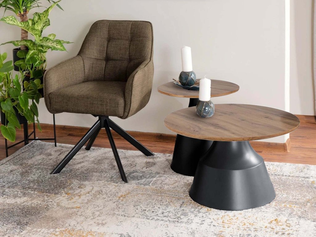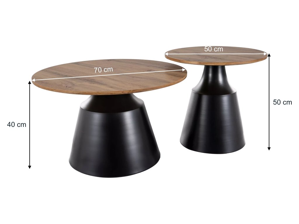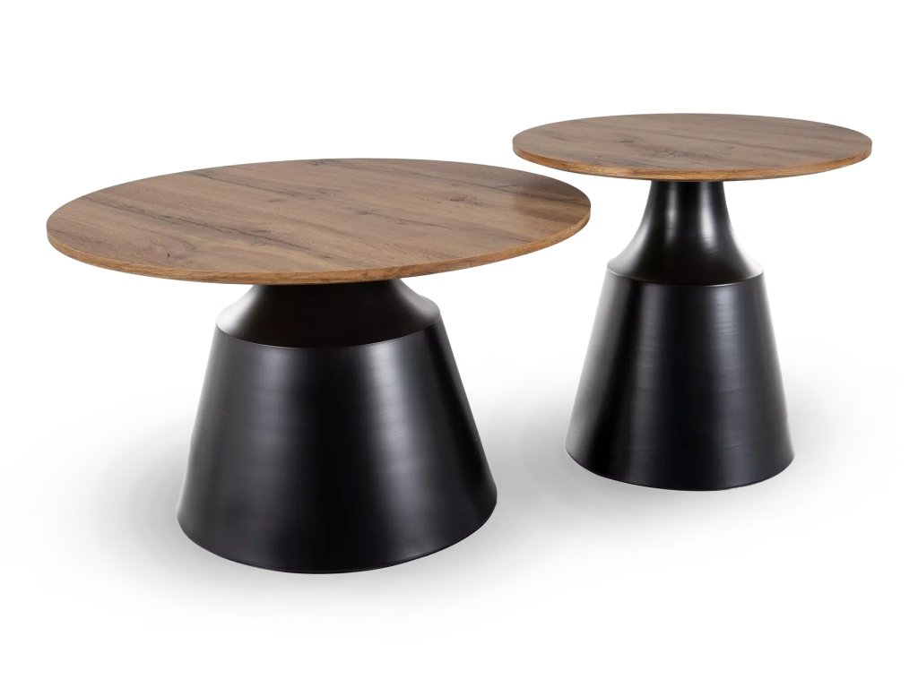 Az Itaka konferenciasztal szett stílusos és praktikus kiegészítője a modern nappalinak. A meleg tölgyfa dekor és a kontrasztos fekete lábak harmonikus egységet alkotnak a természetes megjelenés és az ipari elegancia között.
