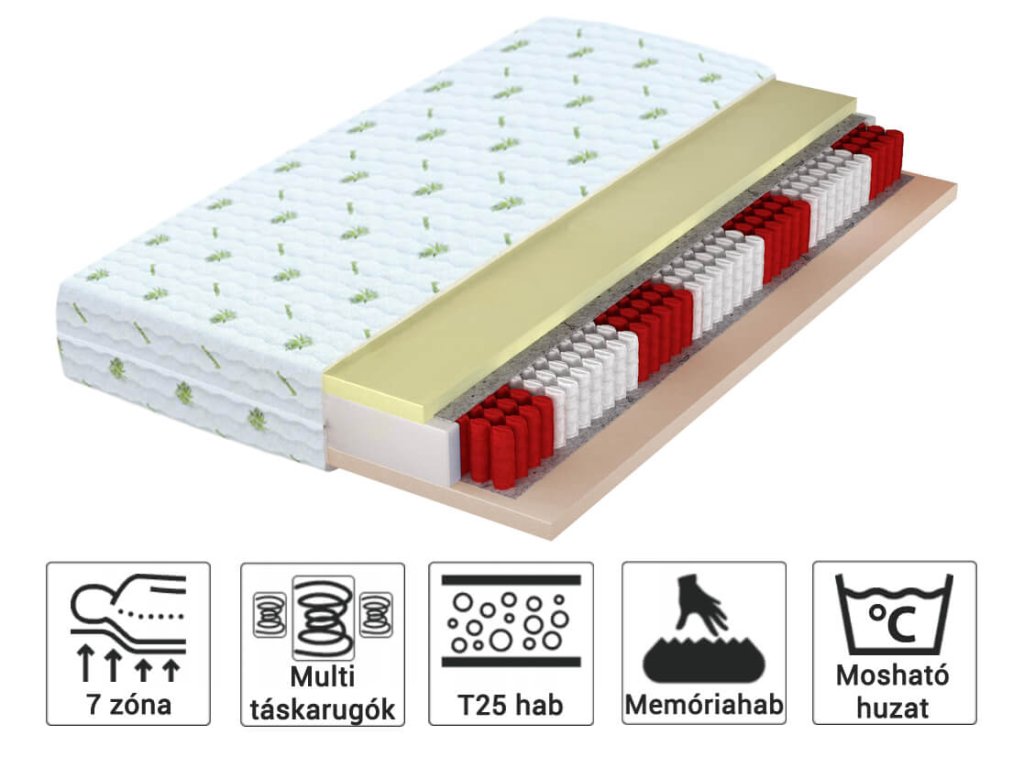 Összetétel: Visco memóriahab, filc, multipocket NanoHARD, poliuretán hab, huzat
