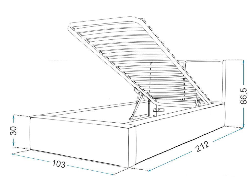 - Az ágy mérete (HoxSzéxMa): 212 x 103 x 30 cm