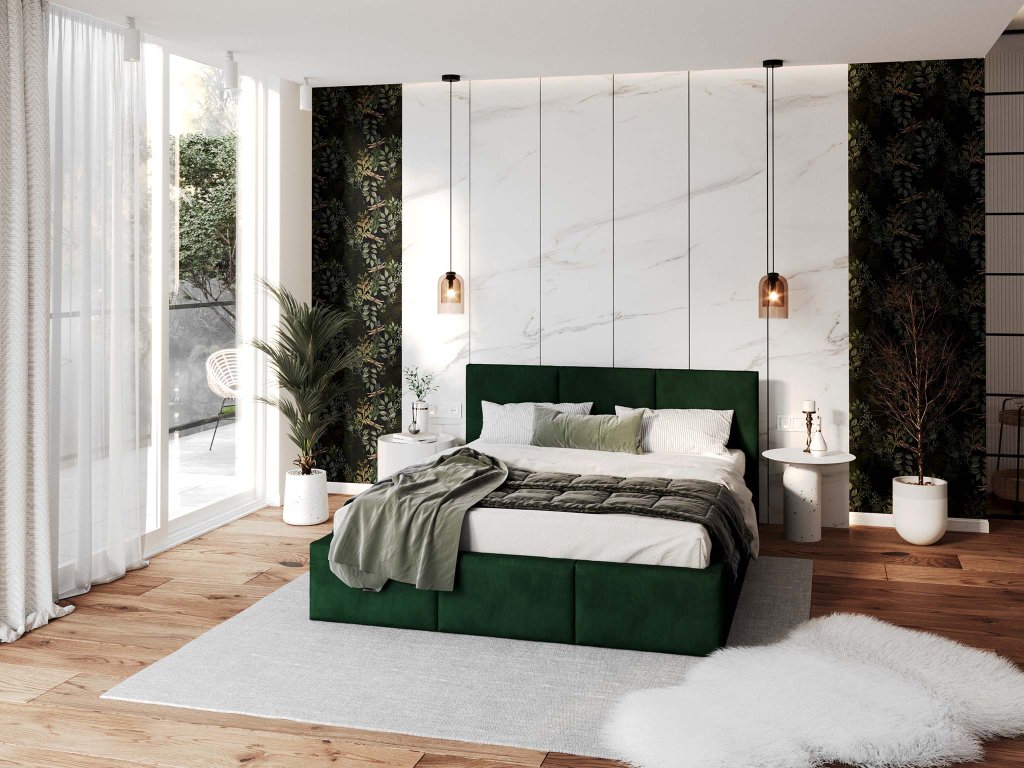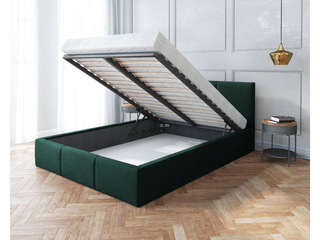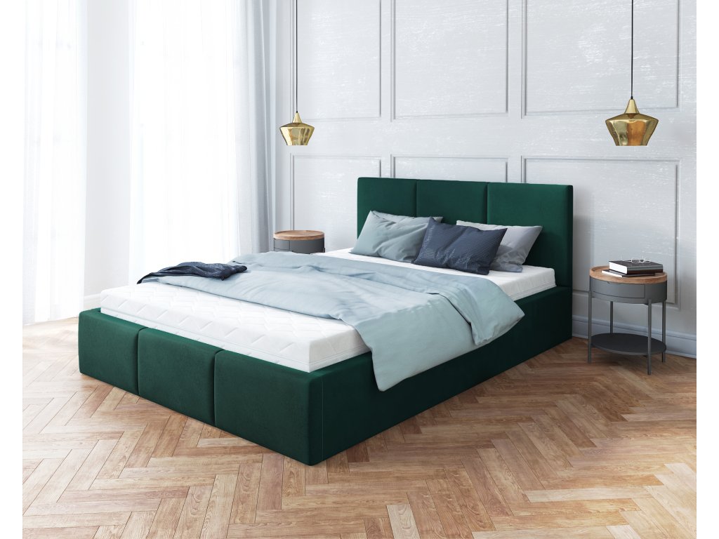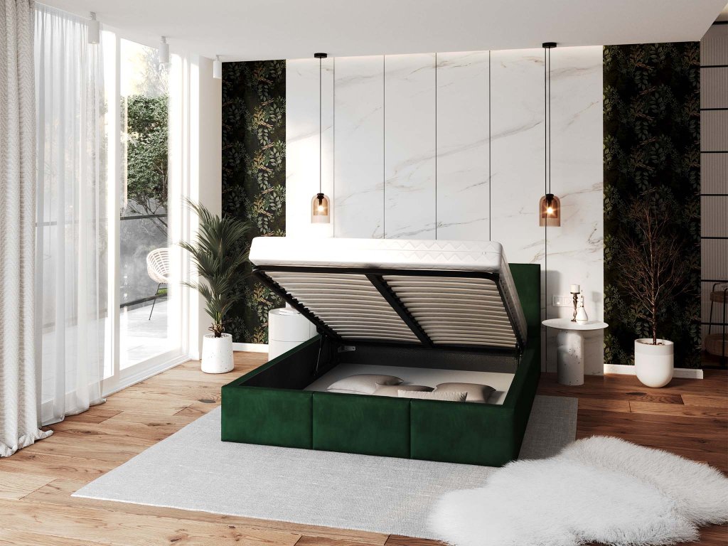 IZABELLA kárpitozott franciaágy ágyneműtartóval - zöld