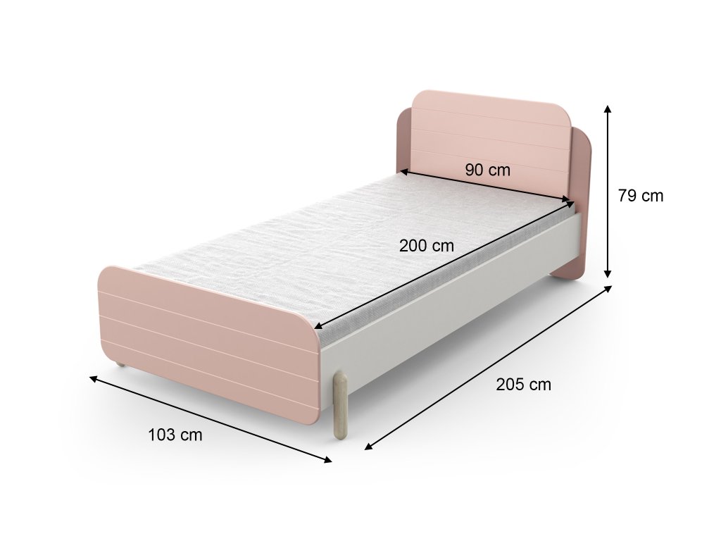 A JADE rózsaszín lányos gyerekágy 90x200 tökéletes választás minden kis vagy nagy hercegnőnek. Matt rózsaszín és fehér színének finom kombinációja, valamint a világos tölgy színben készült tömör fa lábak modern, ugyanakkor természetes és meleg hatást keltenek. Az ágy szerkezete nagyon stabil és strapabíró. Az oldalai kiváló minőségű 18 mm vastag forgácslapból készültek, míg a háttámla MDF bútorlapból, melyek környezetbarát, nehézfémmentes vízbázisú festékkel vannak lefestve.