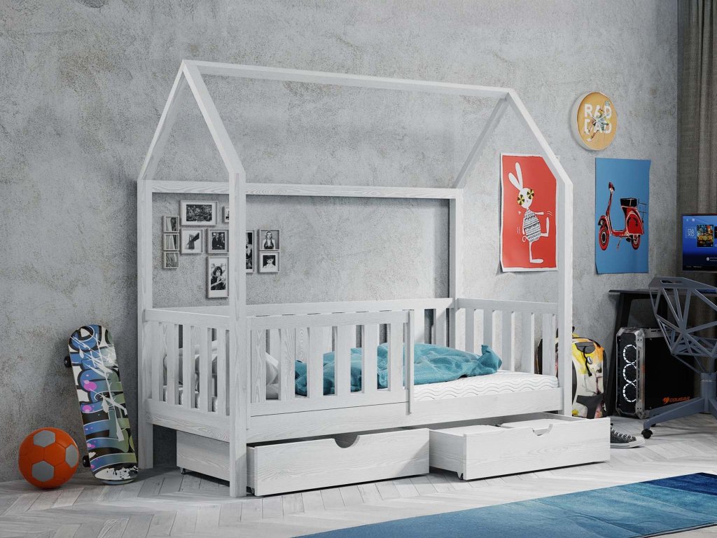 Örvendeztesd meg gyermeked ezzel a gyönyörű fehér színű házikó gyerekággyal 180x80 cm, amely a gyerekszoba dísze lesz. Ez az egyszemélyes ágy fehér színben készül, amely nem csak alvásra szolgálhat, de a gyerekek játszhatnak is benne. Lányos és fiús gyerekszobába egyaránt megfelelő választást jelent. A gyerekágy minőségi borovi fenyőből készül, amely garantálja az ellenálló képességét és a stabilitását. Az ágyhoz tartozó tároló fiók nem csak az ágynemű tárolására szolgál, de tárolhatja bennük a gyerekek játékait, könyveit vagy esetleg a ruháit is. A szülők biztosan értékelni fogják a leesésgátlót is, amely meggátolja, hogy a gyerekek leessenek az ágyról. Amennyiben nem biztos abban, hogy milyen matracot is válasszon gyermekének elolvashatja ezzel kapcsolatos blogunkat, de arra is adunk tippeket, hogy hogyan altassa gyermekét önállóan.