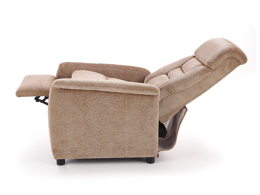 Élvezze kedvenc filmjét a TV előtt ülve a kiváló minőségű JORDAN dönthető fotelben. A relaxáló fotel kényelmes pihenőhelyet kínál egy fárasztó nap után vagy akár kedvenc könyve olvasásához is. A fotel többféle pozícióba állítható. Magas háttámlával és praktikus karfákkal rendelkezik a maximális kényelem érdekében. Stílusos varrás és egyedi forma jellemzi. Az eleganciát sugárzó bézs színű JORDAN pihenő fotel minden nappali tökéletes kiegészítője lehet. A fotelekben rugók és hab található.