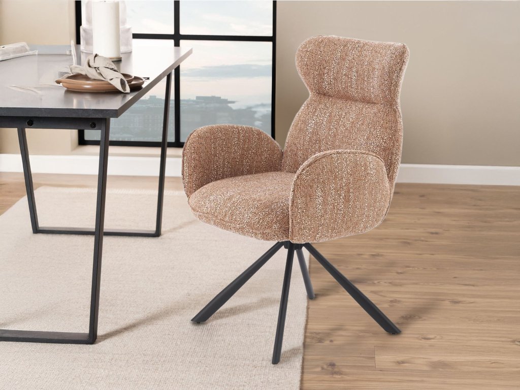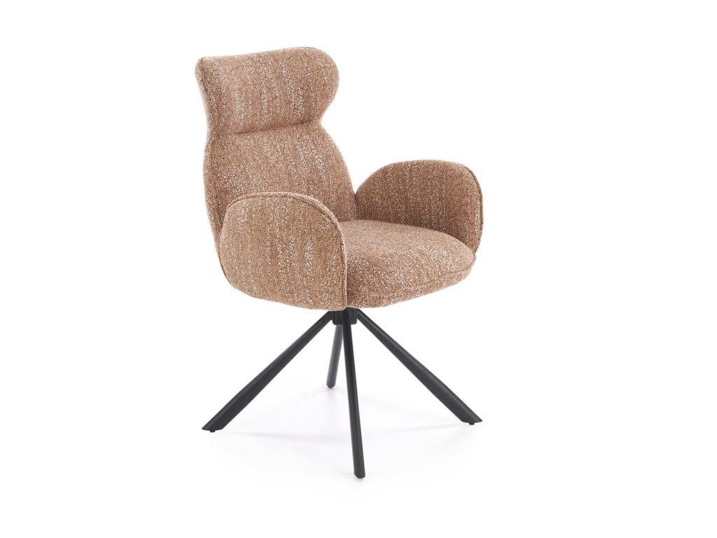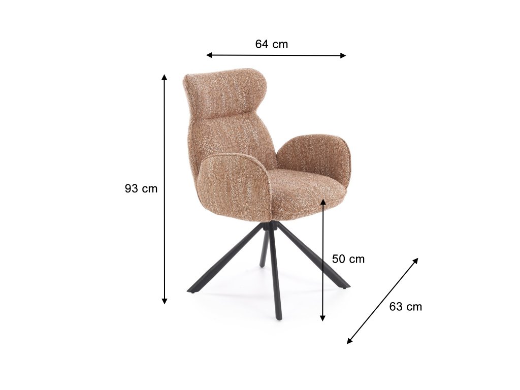 A nem mindennapi gyönyörű fahéj színű CARLA K571 forgófotel a modern formájával tökéletesen illik nemcsak a nappaliba, hanem a dolgozószobába, a hálószobába vagy az olvasósarokba is. A fotel erős és stabil szerkezettel rendelkezik, amely hosszú élettartamot biztosít, így mindennapos, kényelmes használatra készült. Fekete, ovális kialakítású fém lábakon áll. Nagy előnye pedig a forgó mechanizmus, amely stílusossá és praktikussá teszi ezt a relax fotelt. Ideális helyet biztosít a baráti beszélgetésekhez, könyvolvasáshoz vagy íróasztal mellett a munkához is. Az ülőfelületet puha, kellemes tapintású és minőségi kárpitszövet borítja, amely gondoskodik a kényelmes ülésről.