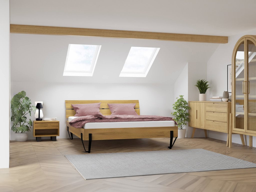 Vigyen az otthonába egyedi karaktert a Kapera tölgy franciaággyal. A tömör fából készült ágy egy elegáns bútordarab, amely beillik minden hálószobába vagy vendégszobába. Egyedi kialakítása mindenkit lenyűgöz, aki egy nem mindennapi kinézettel és formával rendelkező ágyat keres. A tölgyfa az ellenálló képességéről és a tartósságáról ismert. A fa megfelelő megmunkálásának köszönhetően biztosítva van a hosszú élettartama. Az ágy tömör tölgyfa és fém kombinációjában készül. Az egyedi fekete fém lábak egyedi stílust kölcsönöznek az ágynak. A magas fa ágytámla praktikus és dekoratív funkciót is betölt. Az ágy stabil szerkezete garantálja majd a kellemes és zavartalan pihenést. Ez a minőségi tömörfa ágy megbízható társa lesz majd évekig és megfelelő gondoskodás esetén hosszútávon megőrzi majd az egyedi báját.