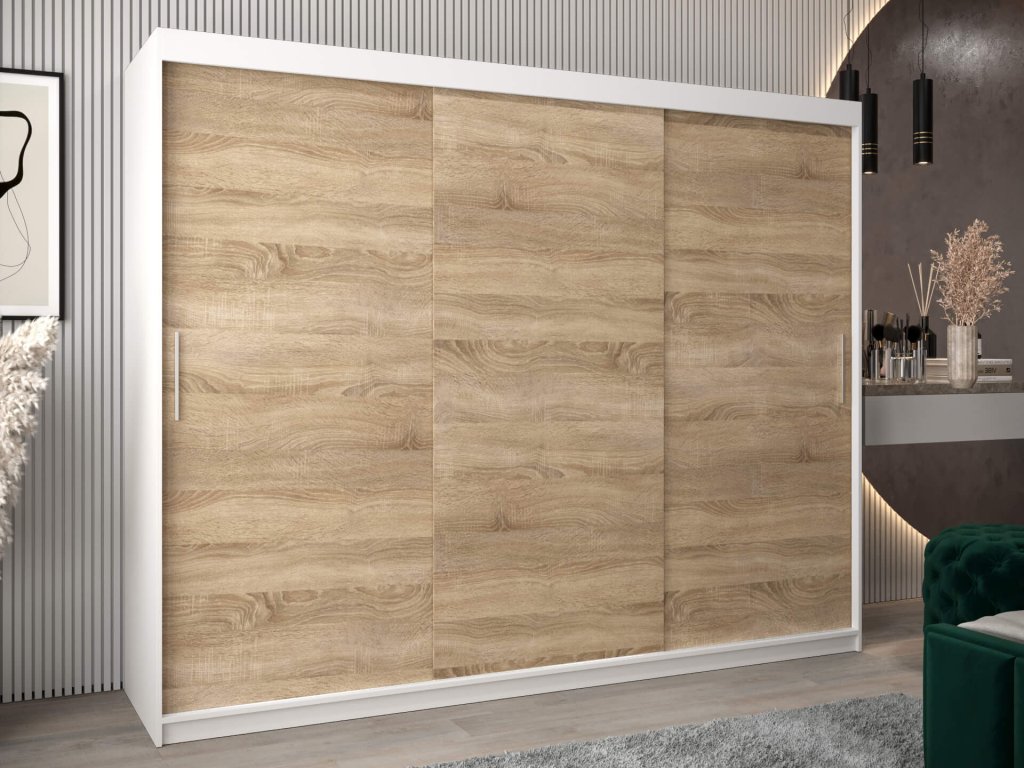TOKYO tolóajtós ruhaszekrény 250 - fehér / sonoma tölgy