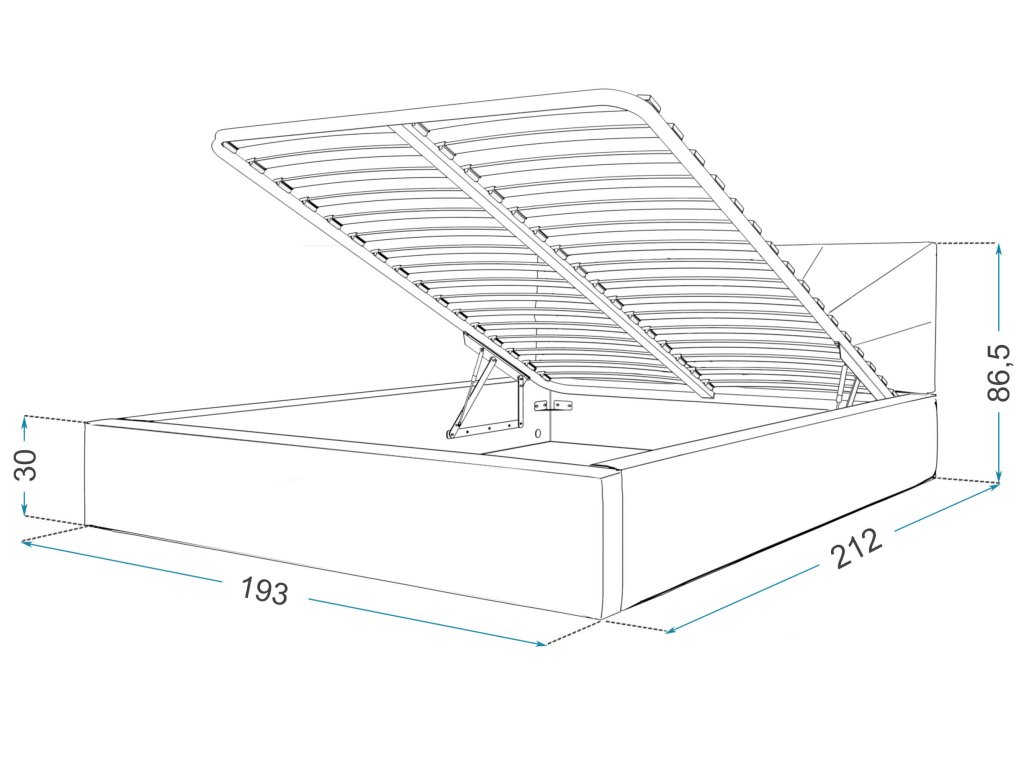 Kárpitozott GABRIELLA ágy ágyneműtartóval és fém ágykerettel