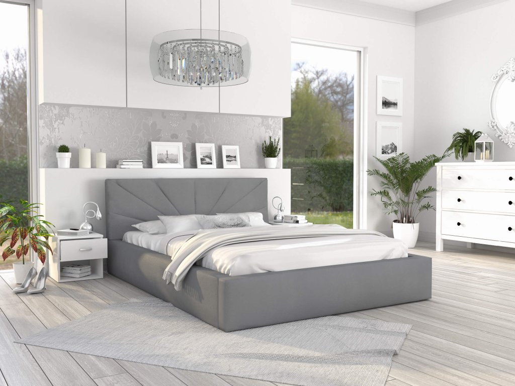 A modern szürke GABRIELLA kárpitozott franciaágyba biztosan beleszeret majd a színeinek és a steppelt magas háttámlájának köszönhetően, amelynél megtámaszthatja a hátát olvasás vagy egy kellemes ágyban elfogyasztott reggeli közben. Előnye a tágas ágyneműtartó, amely a párnák, takarók tárolására ideális. A kárpitozott ágy minőségi bútorlapból készül, velúr szövettel kárpitozva. Ez az anyag tapintásra rendkívül lágy és kellemes. Az ágyrács kerete fémből készült rugalmas nyírfa lecekkel. Az ágy teherbírása 240 kg.