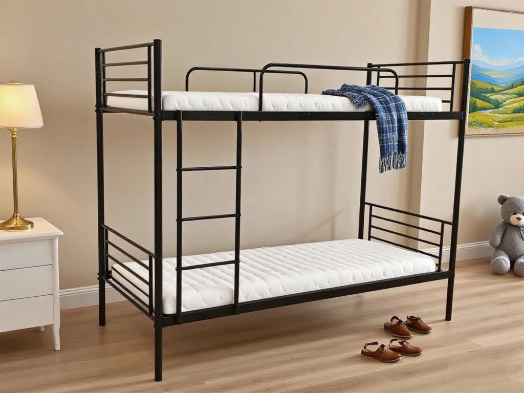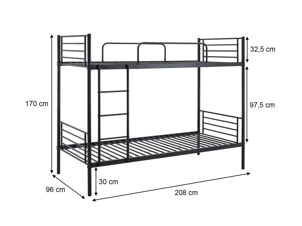 A modern Kavon fém emeletes ágy két teljes értékű fekvőhelyet kínál, amelyek helytakarékos megoldást jelentenek a szobában, miközben stílusos megjelenést biztosítanak. Univerzális fekete színének köszönhetően bármilyen enteriőrbe jól illik – legyen szó diákszobáról, gyerekszobáról, kollégiumi szobáról vagy akár szállodai elhelyezésről.