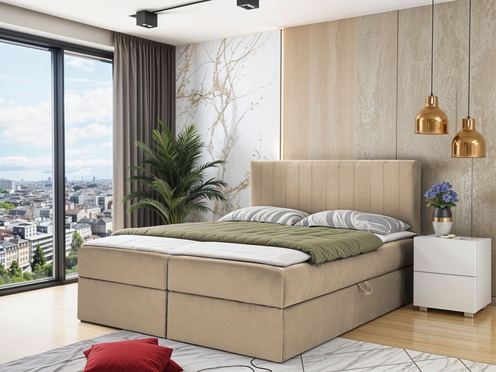 KAYLA kárpitozott boxspring franciaágy - bézs
