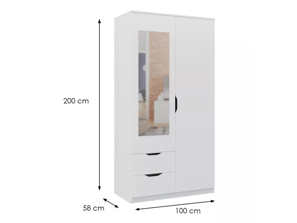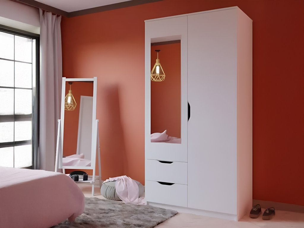 Kétajtós fehér KELLY tükrös szekrény, amely praktikus megoldás minden hálószobába. A ruhásszekrény azonban megfelelő lehet a gyerekszobába vagy a vendégszobába is.