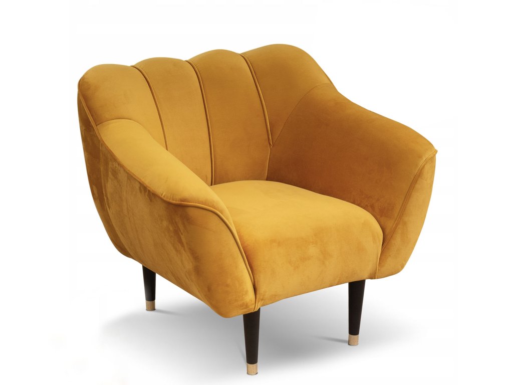 A kényelmes és modern KEMI fotel skandináv stílusban készül. A fotel velúrral kárpitozott, amely kellemes tapintású és nem bolyhosodik. Tökéletesen feldob minden nappalit vagy hálószobát. A fotel gyönyörű tömör fából készült lábakkal rendelkezik fekete színben, a végein arany színű befejezéssel. A KEMI kollekció jellemzője a gyönyörű háttámla, amely ízléses steppeléssel rendelkezik, amely egy kagylóra emlékeztet. Ennek köszönhetően a fotel igazán egyedi és elbűvölő kinézettel rendelkezik. A profilozott háttámlára és karfára T25, az ülésre T30 keménységű habot használtak fel.