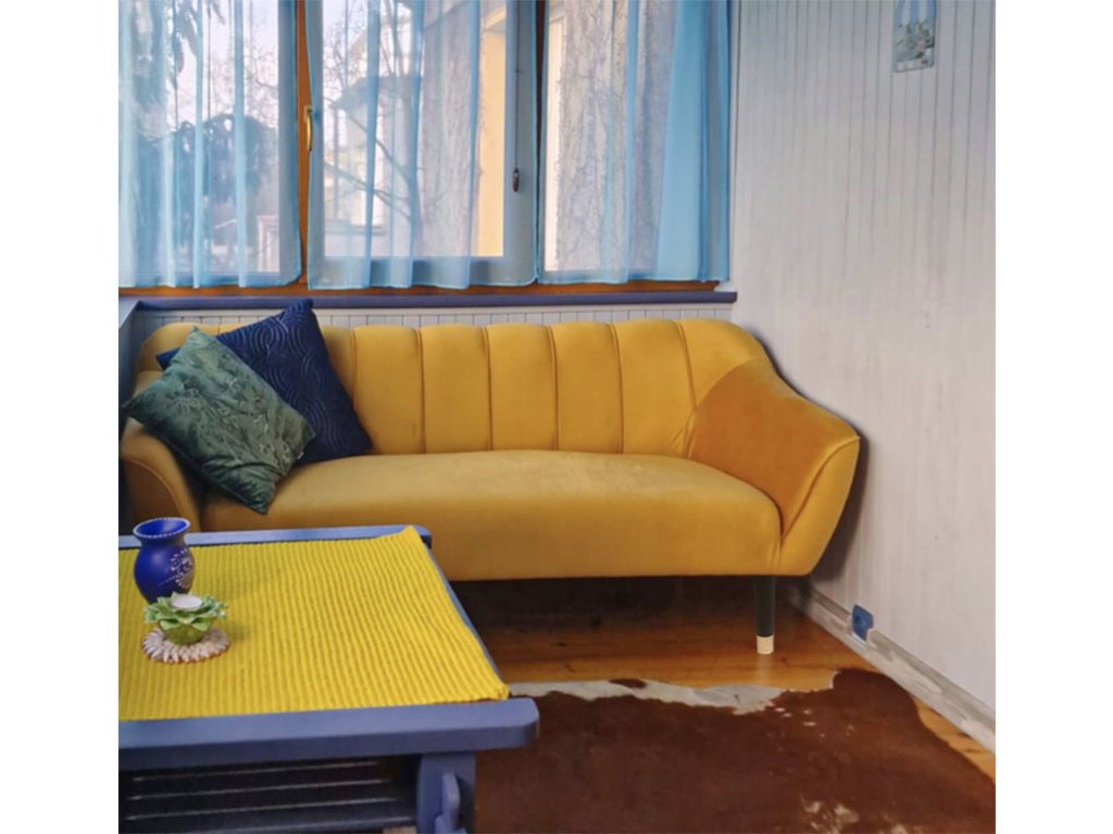 KEMI háromszemélyes kanapé skandináv stílusban készült gyönyörű mustársárga színben, amely feldob minden otthont. A profilozott háttámlára és karfára T25, az ülésre T30 keménységű habot használtak fel.A kanapé gyönyörű tömör fából készült lábakkal rendelkezik fekete színben, a végein arany színű befejezéssel. A kanapé velúrral kárpitozott, amely kellemes tapintású és nem bolyhosodik. Tökéletesen feldob minden nappalit vagy hálószobát. A KEMI kollekció jellemzője a gyönyörű háttámla, amely ízléses steppeléssel rendelkezik, amely egy kagylóra emlékeztet. Ennek köszönhetően a kanapé igazán egyedi és elbűvölő kinézettel rendelkezik.