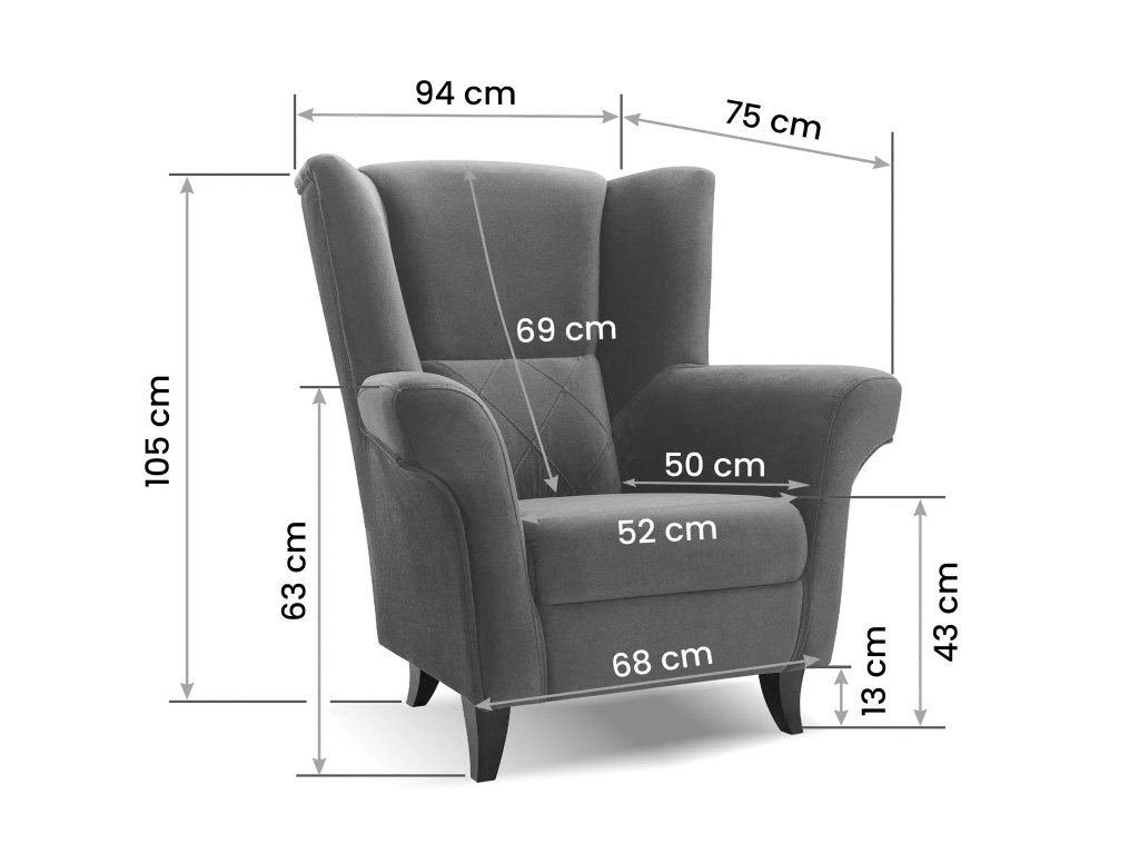 Élvezze a pihenés pillanatait új kedvenc foteljében! A Kent füles fotel tökéletes kényelmet nyújt nappalijában, hálószobájában, dolgozószobájában vagy otthona bármely helyiségében. Egy hosszú nap után élvezheti kedvenc italát és egy jó könyvet ebben a kényelmes fotelben. A Kent füles fotel időtálló dizájnjának köszönhetően harmonikusan illeszkedik bármilyen bútorhoz. Kiváló minőségű és tartós anyagokból készült, stabilitását pedig masszív fa lábai biztosítják. Ergonomikusan formázott háttámlája kiváló támaszt nyújt a hát számára, ami különösen előnyös a gerincnek.