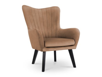 Barna szövettel kárpitozott TED relax fotel magas fekete lábakkal és steppelt háttámlával