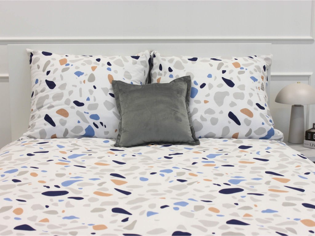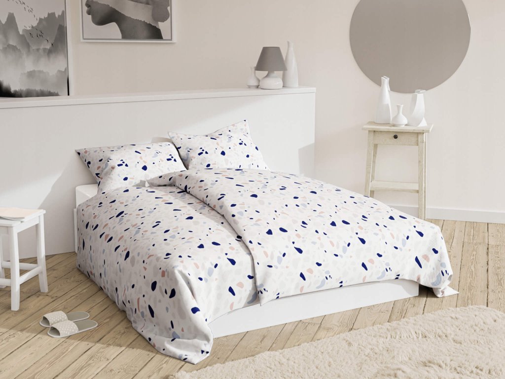 A Klarissa ágyneműhuzat fehér színben készül, szürke, kék és krémszínű mintával. A designos színének és mintájának köszönhetően eleganciát kölcsönöz minden hálószobának vagy gyerekszobának. Az ágynemű természetes anyagból, 100 % pamutból készül. A grammsúlya 120 g/m2, amely garantálja a termék optimális vastagságát. Az anyag struktúrája a lenre emlékeztet, matt, de kimosás után kellemes tapintású és puha lesz. Az ágynemű OEKO-Tex Standard 100 tanúsítvánnyal rendelkezik, amely garantálja a textil termékek biztonságosságát. Az ágynemű decens fehér cipzárral zárható. Mivel a cipzár műanyagból készült, ezért allergiások számára is megfelelő. Azért, hogy az ágyneműhuzat még hosszú évekig megőrizze a kinézetét, kérjük kifordítva mossa, behúzott cipzárral maximum 40°C-on. Szárítógépben szárítható és vasalni is lehet maximum 150°C-on.