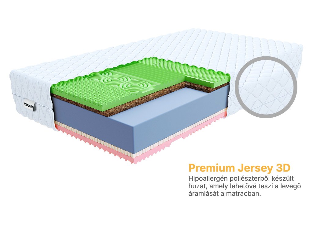 Antiallergén és átszellőztetett réteg, mely tökéletesen alkalmazkodik az emberi testhez, megtartja alakját, megakadályozza az időnek elötti kifekvést és elhasználódást. Magas rugalmasság és légáramlás jellemzi, így egészséges és kényelmes alvást biztosít. Antiallergén, véd a penész, atkák, gombák fejlődésétől.